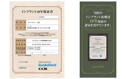 ガイドデント社のインプラント10年保証に加盟しております。