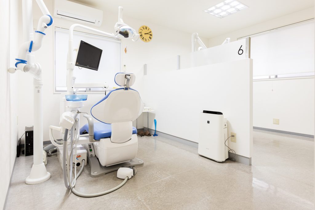当院はユニット(治療するイスの事を、このように呼びます)ごとの間隔が広く、半個室のような空間ですので、お子様の症状が他の患者様のお耳に入る事の無いよう、十二分に配慮しております。ご安心下さい。